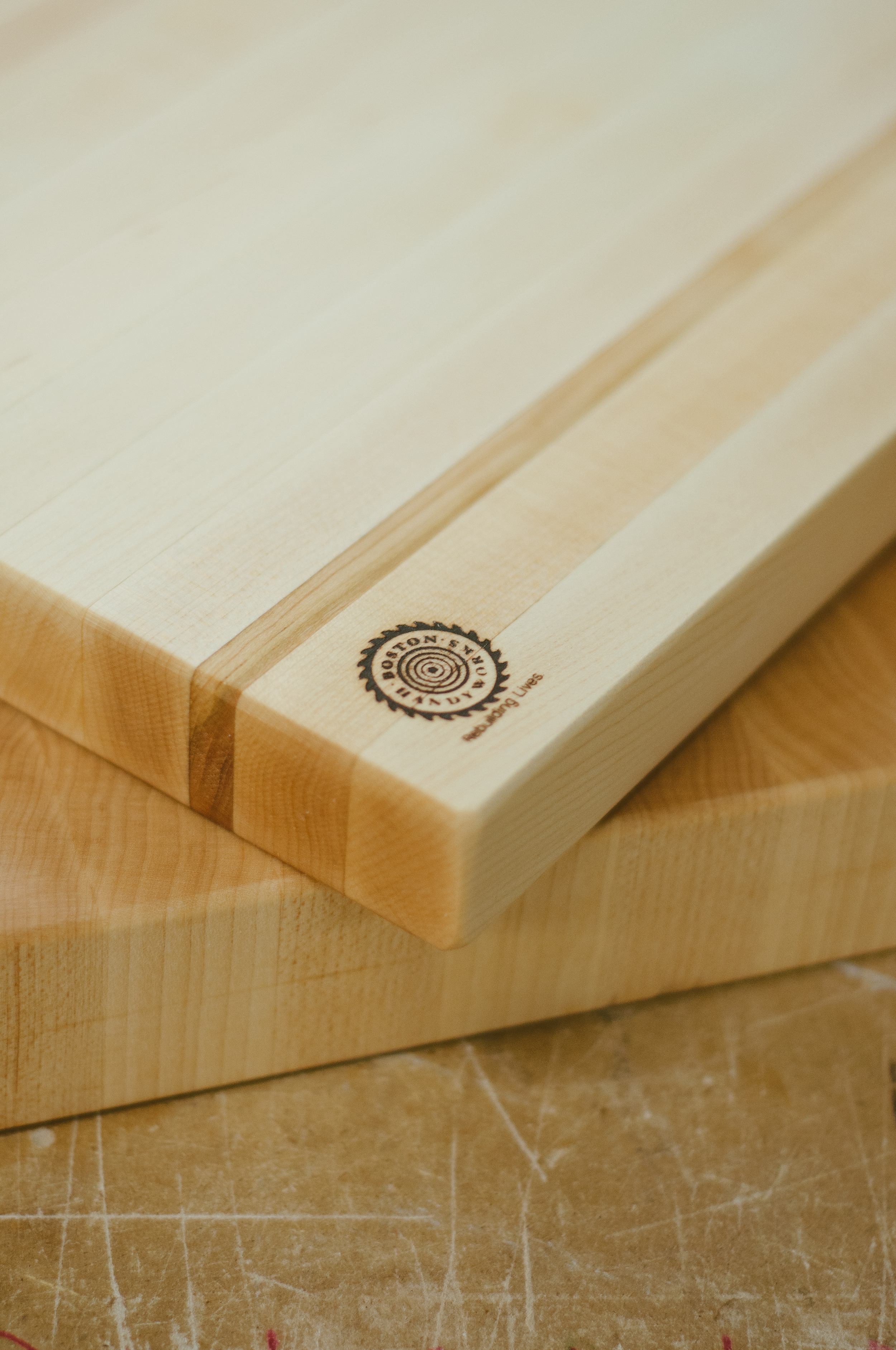 With every cutting board that is sold, 100% of the proceeds go towards funding the Boston HandyWorks training program, providing education, training and resources to help rebuild lives. An average of 35 employees are working at Boston HandyWorks at any given time. Their typical length of employment is about 6 months or less. Although it may seem that the workshop is an ideal long-term job opportunity for many, their mission is to get them out and help them find other work.