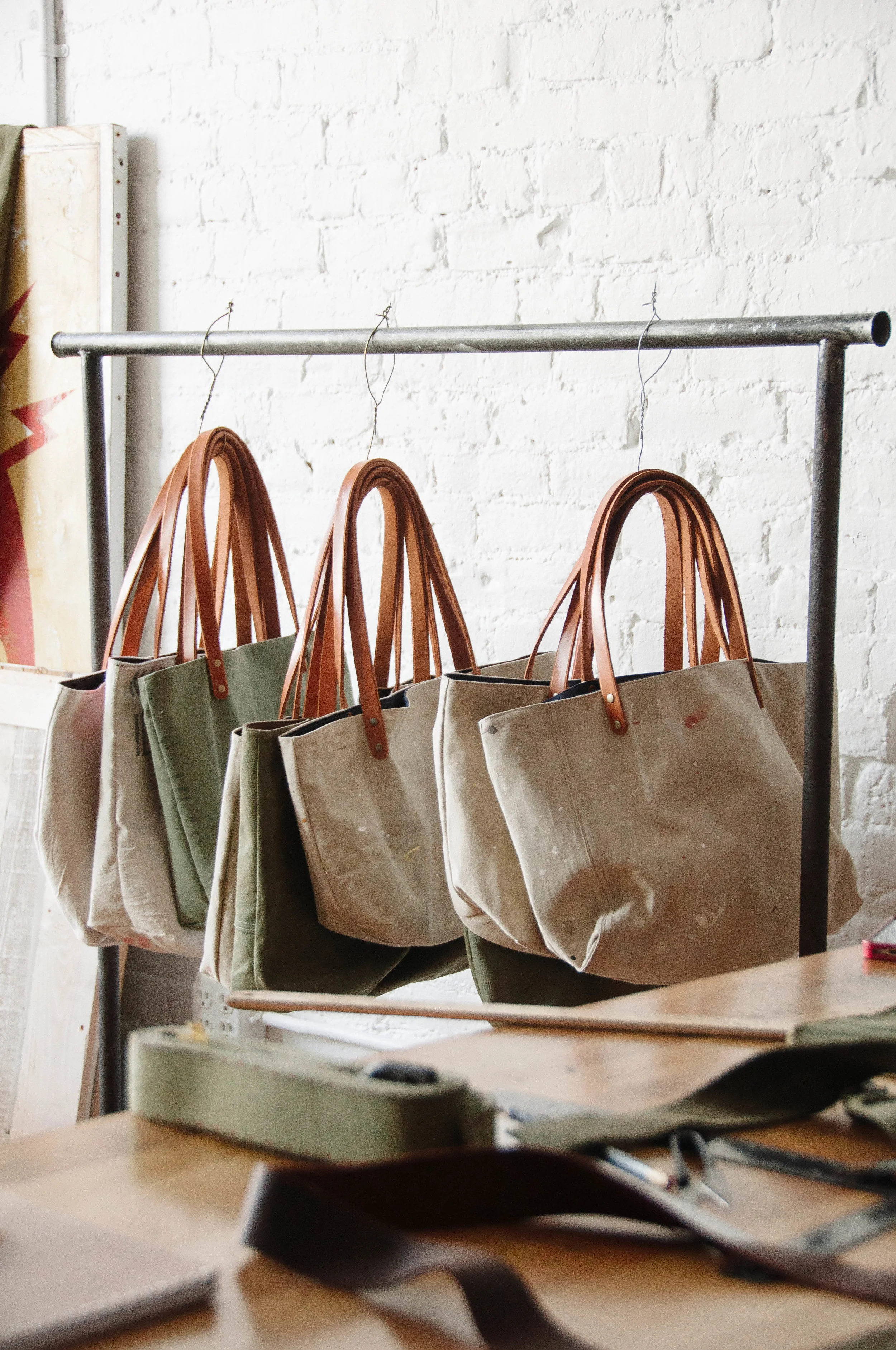The bags that Alice produces are unique and one-of-a-kind. Something so important to the Forestbound brand, and also a reason why she prefers to keep her business on the smaller side. The character that is found in each bag is not conducive to producing for wholesale, but something she is comfortable with embracing. Materials are typically sourced from flea markets, estate sales, barn sales and military shows in the New England area... the North Shore and Portsmouth area are typically areas where she finds great materials because of ties to the military base and naval history. Military tents, boy scout bags and even painter's drop cloths can all be turned into beautiful Forestbound bags.