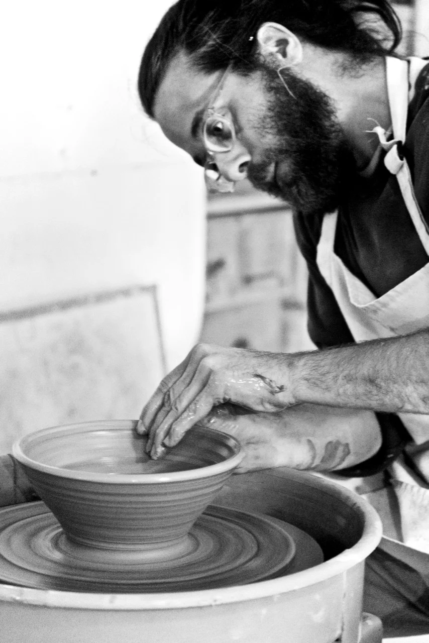 Most of the time, I seek road trips to get away from the city for a bit, but there are days when exploring my own area can inspire just as much as a long drive out to the wilderness. Living in Cambridge, Massachusetts, there are so many city side roads to stroll with hidden gems to discover, as lots of new businesses, eateries and small shops seem to be popping up constantly in the Boston area. Several times in my local exploration of restaurants and gift shops, I’ve come across the work of ceramicist Jeremy Ogusky, also known as “Boston Potter”, whom I’ve had the pleasure of getting to know over the last year or so. The other day I was able to catch up with Jeremy, the owner and one-man operator of Ogusky Ceramics, at his home studio in Jamaica Plain, Boston. When I arrived, Jeremy was chatting with his aunt and working on some mugs that are sold at a women-owned shop called “Olives & Grace” in the South End. You’re almost certain to run into Jeremy’s work if you’re road tripping throughout Boston, Brookline, Cambridge or Jamaica Plain, as his wares are now sold and utilized in many shops and restaurants.