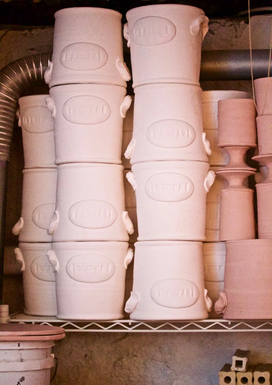 I love fermented foods, especially when used in interesting ways to create a meal, and it’s always a pleasure to have my food plated beautifully on handmade pottery, as it adds such a nice homemade feel to a dish. Some restaurants that use Ogusky Ceramics in his own neighborhood are Aurum Pies and Brassica Kitchen. These two eateries boast unique dishes using many locally sourced farm ingredients, like Brassica’s Cauliflower Toast — a cauliflower puree with pickled raisin in champagne vinegar, parsley and parmesan; or their Lamb Ham Toast with leg of lamb cured for 3 weeks along with a pickled black rice and plum vinegar; and Pork Belly from a Maine family farm with pickled onions and Ward’s Farm Delicata Squash. Durum Pies offers delicious hand pies made to order with fresh fillings like portobello mushroom, red pepper, spinach, BBQ horseradish and cheddar, or veggie/rice bowls and flatbreads. Another wonderful establishment in Boston is Townsman and I appreciate how Pastry Chef, Meg Alyssa uses Jeremy’s Infinity Plates to display her gorgeous desserts so artfully. Jeremy has also recently made some Geta Sushi Plates for the ever popular Cafe Sushi in Cambridge, and has collaborated with so many eateries that he now has a large collection of logo stamps piling up in his studio. From his oil decanters at American Provisions in Southie, to mugs at Tres Gatos — a Spanish tapas spot with a record/book shop, to giant Beer Steins at JP Beer Garden and Clay Growlers at Kirkland Tap & Trotter, there are countless uses for his ceramics and so much delicious food to try!